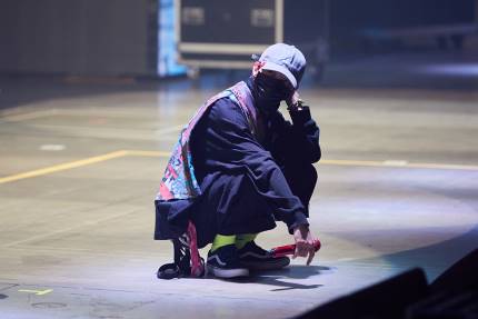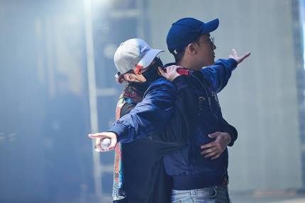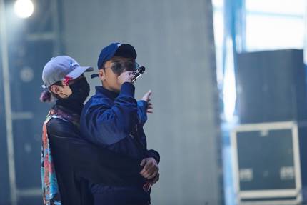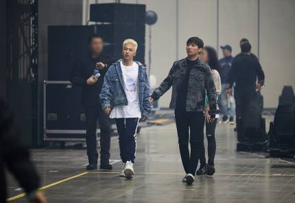 DAESUNG and TAEYANG arrives and heads to the stage. SEUNGRI is following them from behind.