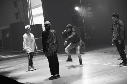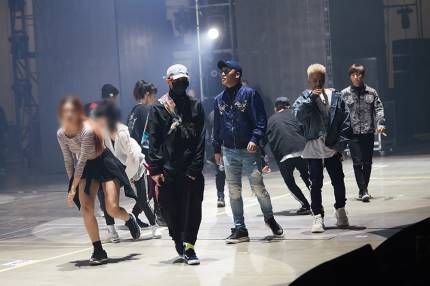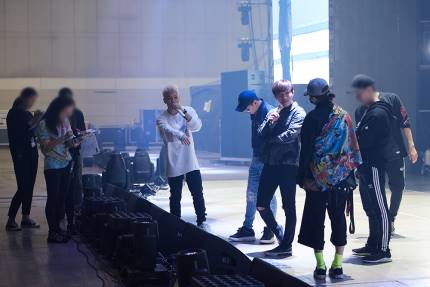 Four individuals preparing for rehearsal under the bright lights. Who are they? They are BIGBANG, getting ready for the 2017 <Last Dance> concert. Since the members got back together after finishing intense personal schedules, people are expecting a glamorous performance. The rehearsal scene filled with excitement and thrill, revealing now.