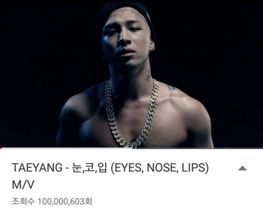 On October 8 at approximately 8 a.m. KST, BIGBANG member Taeyang’s “Eyes, Nose, Lips” music video reached 100 million YouTube views, making it the tenth BIGBANG MV to do so.