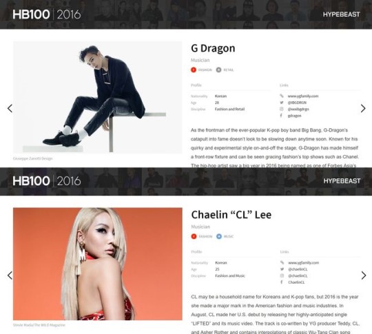 G-DRAGON and CL made it on the list of HYPEBEAST’s most 100 influential people for 2016.